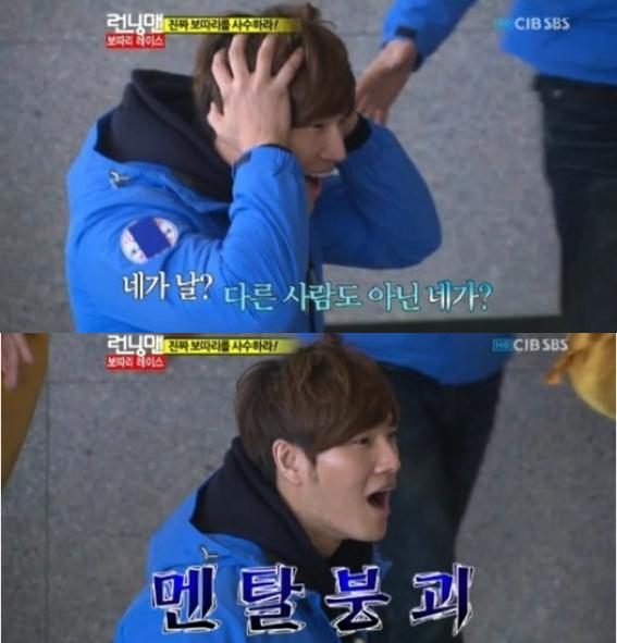 김종국 멘탈 붕괴에 네티즌들은 "김종국이 하하에게 당했네", "하하가 웬일이야", "김종국 허탈함에 빠졌어"등의 재밌다는 반응을 보였다. (사진-SBS 방송 캡처)