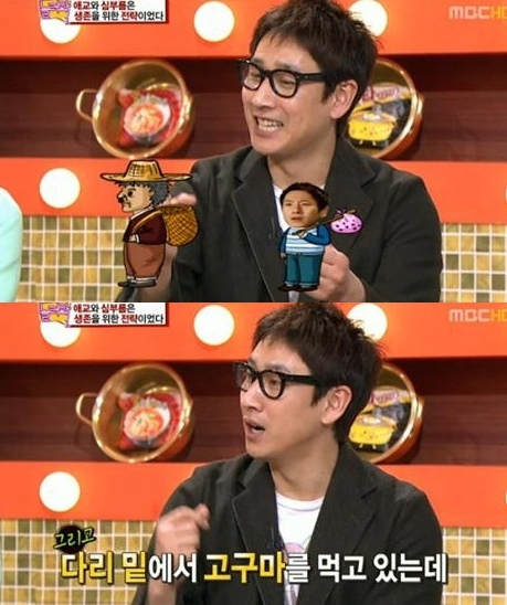 이어 이선균은 "아저씨와 함께 다리 밑에서 고구마를 주워먹다 경찰과 함께 찾아온 어머니에게 발견됐다"고 밝혀 스튜디오를 웃음바다로 만들었다.