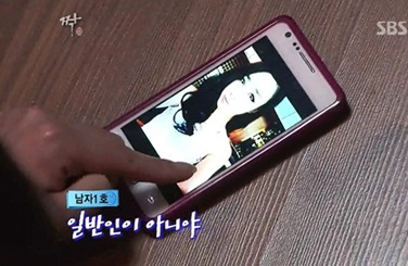 남자1호는 여자5호가 보여준 휴대전화 속 사진을 보고는 과장된 반응을 보이기도 했다.