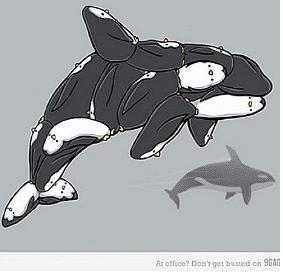 특히 고래의 지느러미며 꼬리에 펭귄들의 몸체가 절묘하게 맞아떨어지며 보는이들의 웃음을 자아낸다.