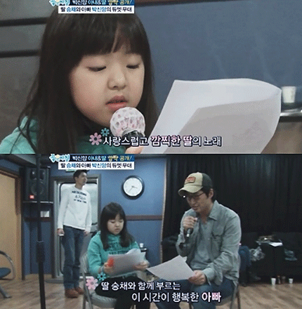 박신양의 딸 승채 양은 아빠와 듀엣곡을 부르기 위해 열심히 연습 중인 모습이다.
