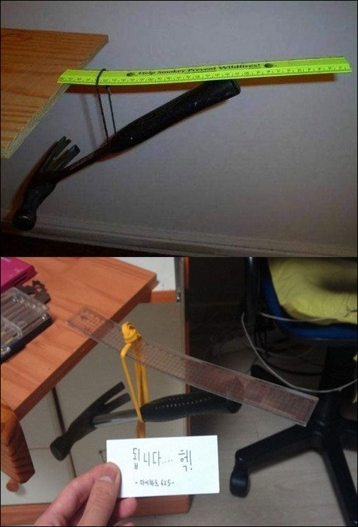 특히 '불가능이라 생각했던 사진'은 자에 위태로운 모습으로 망치가 달려 있다. 이는 언뜻 보면 합성 사진 같지만 실제 사진이다.