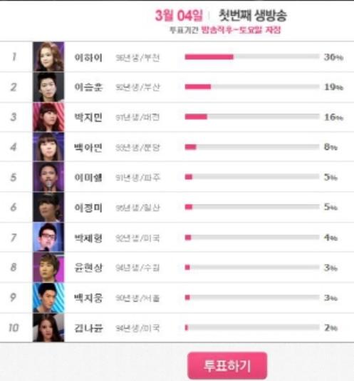 4일 첫 생방송을 앞둔 SBS ‘일요일이 좋다-서바이벌 오디션 K팝스타’는 지난달 26일 방송 직후부터 3일 자정까지 온라인에서 사전투표를 진행했다.