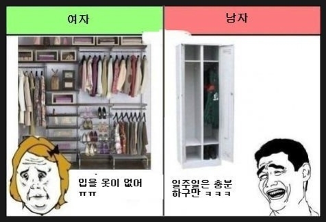 남자 여자 옷장 차이