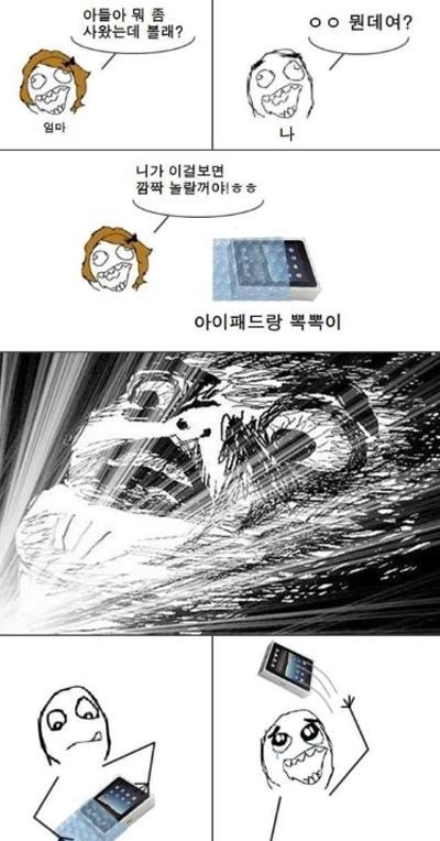 공개된 만화는 엄마와 아들이 등장해 엄마는 "아들아 뭐 좀 사왔다. 볼래?"라고 물었고, 아들은 엄마가 준 상자를 열더니 아이패드와 뽁뽁이를 보고 좋아한다.