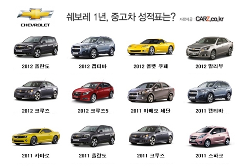 6일 중고차 전문업체 카즈에 따르면 출범 1년째를 맞이한 쉐보레 브랜드의 중고차 잔존가치는 동일 조건의 GM대우 차량보다 2~3% 상승했다.