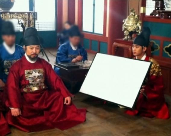 특히 그는 왕 역할의 분장을 하고 자신의 촬영이 아님에도 진지한 표정으로 반사판을 들고 있어 눈길을 끈다.