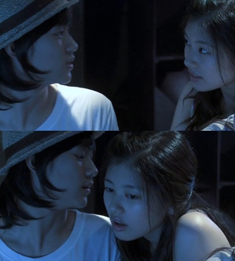 이 장면에서 김수현은 지금의 깔끔한 머리가 아닌 긴 머리가 눈길을 끌고 있다.