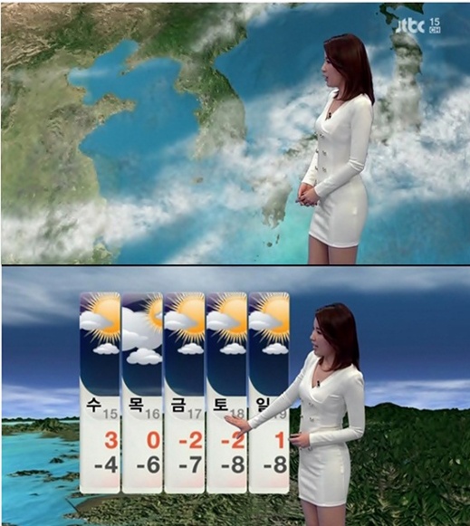 공개된 사진은 JTBC 이선민 기상캐스터가 JTBC '뉴스10'에서 날씨 예보를 하고 있는 방송화면을 캡처한 것이다.