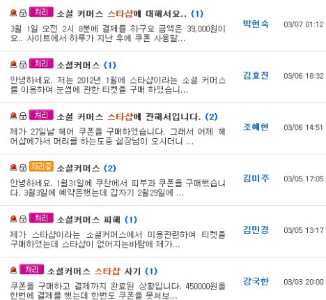 13일 서울 동작구 상도2동에 사는 이 모(여.25세)씨에 따르면 그는 지난 1월 경, 뷰티전문 소셜커머스 스타샵에서 뷰티 쿠폰 2장을 40%할인된 9만2천원에 구매해 카드결제했다.