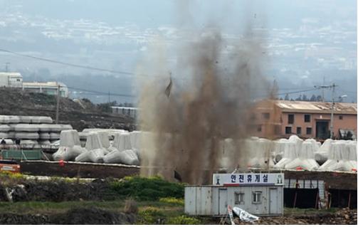 제주시 또한 구럼비 발파에 대해 공사정지 협조요청 공문을 보낸 것으로 전해졌다. 이에 국방부는 “제주도지사가 주관하는 청문 절차에 협조하되, 공사는 계획대로 실시하겠다”고 밝혔다. (사진-연합뉴스)