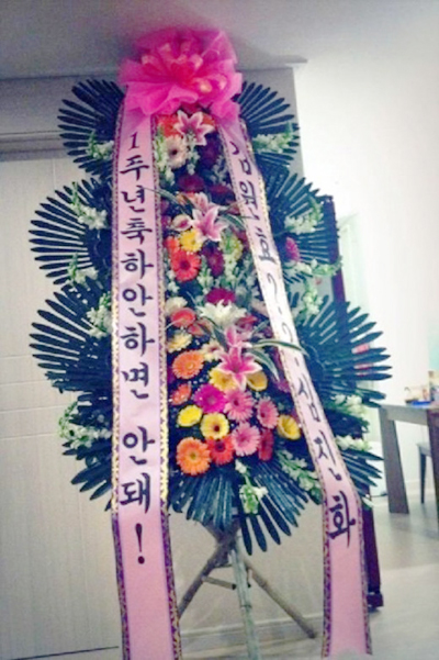 공개된 사진 속 화혼에는 '김원효 심진화 1주년 축하 안하면 안돼'라는 문구를 적어 김원효 자신의 유행어를 한 번더 어필하고 있다.