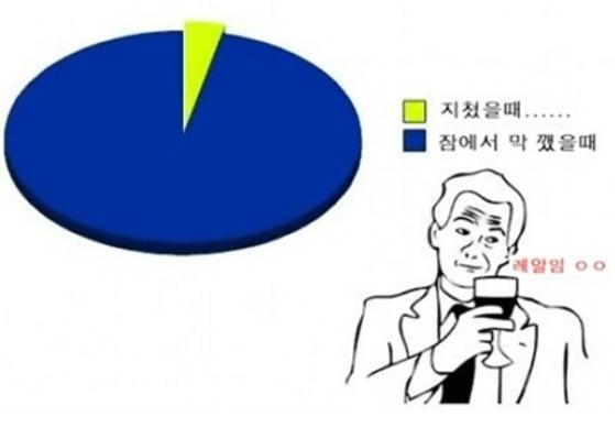 도표를 보면 ‘잠에서 막 깼을 때’가 대부분을 차지하고 있어 누리꾼들의 공감을 샀다.