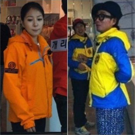 사진에서 정재형은 보아와 함께 등 뒤에 자신의 이름표를 붙이고 런닝맨 촬영에 임하고 있다.