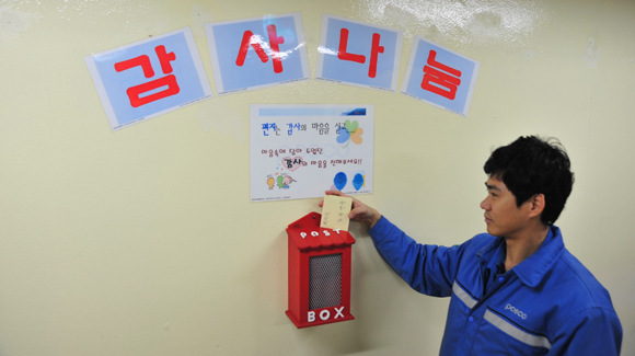 제선부도 활발하게 감사나눔활동을 진행하고 있다. 원료공장에 설치된 빨간 우편함에 감사의 손편지를 적어 넣어두면 공장 우체부가 편지의 주인공을 찾아 전달해 준다.