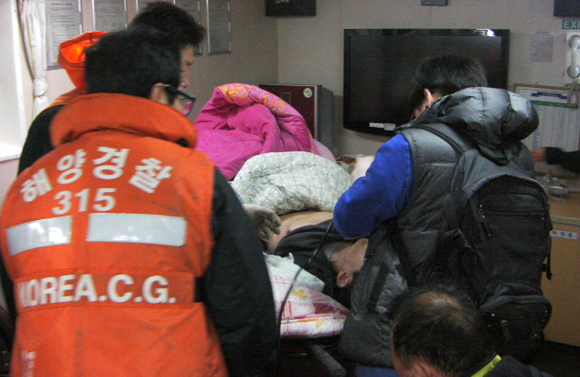당시 기상은 물결이 4m 가까이 일어 11시께는 풍랑주의보가 발효될 정도로 기상이 악화됐으나, 해경은 300톤급 경비함정을 보내 육상 병원으로 후송 조치했다.