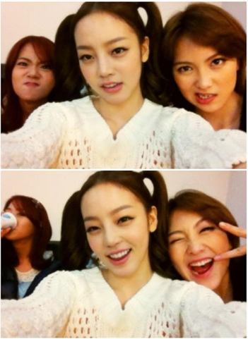 구하라가 공개한 사진은 반전 셀카로 두 장의 사진 속에는 각각 다른 감정을 표현하는 표정을 지어보이고 있는 멤버들의 모습이 담겨있다.