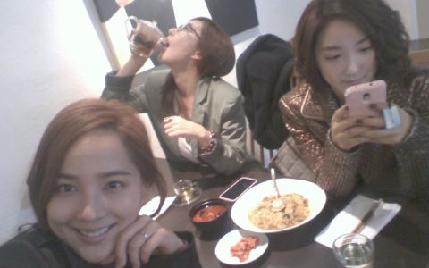 유진은 최근 자신의 트위터에 "바다언니의 진정한 트위터리안의 모습과 여전히 엽기포스를 자랑하는 우리 수영이. 올만에 뭉친 우리의 모습"이라는 글과 사진 한 장을 게재했다.