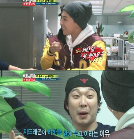 방송에서 지드래곤은 하하와 마추지지만 "하하형 어디 갔어요?"라며 지난주 자신이 당한대로 되갚아 준다.