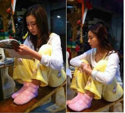 배우 신세경의 수면양말 신은 모습이 화제다.