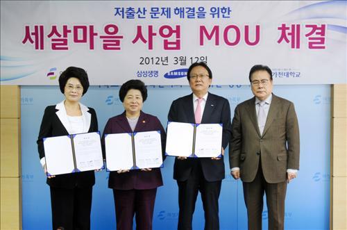URL복사 기사공유하기 스크랩 프린트 메일보내기 글씨키우기 삼성생명이 여성가족부와 ‘저출산 문제 해결을 위한 세살마을 사업 업무 협약식’을 체결했다고 12일 밝혔다. 이번 협약식을 통해 서울 지역에서만 추진됐던 세살마을 사업이 여성가족부의 전국 건강가정지원센터를 통해 전국적인 사업으로 확대될 예정이다. 세살마을 사업은 사회가 아이를 돌보자는 취지로 임부와 조부모에 관련 교육을 하고 있다. 김금래 여성가족부 장관은 이날 협약식에서 "정부와 민간이 함께 저출산 문제해결에 앞장서고, 아동의 건강한 성장을 지원하기 위해 지속적으로 노력하겠다"고 말했다. 저작권자 © 소비자가 만드는 신문 무단전재 및 재배포 금지 김문수 기자 다른기사 보기 URL복사 기사공유하기 주요기사 SK하이닉스, 350억 달러 '수출의 탑' 수상…수출 지역 미주·유럽·아시아로 다변화 수입차 11월 판매 2만9357대, 23.4%↑...베스트셀링카는 '모델 Y' 10대 그룹 내부거래 193조…LG·SK·한화 상표권 수익 1000억↑ 소비자의 날 30주년…공정위, 플랫폼 책임 강화·AI기만 대응 정책 추진 예고 LF 헤지스, 25FW 시즌부터 키즈 라인 전개...패밀리 브랜드로 확장 드라이브 종근당, 美 신경과학학회서 퇴행성 신경질환 치료제 ‘CKD-513’ 비임상 성과 공개
