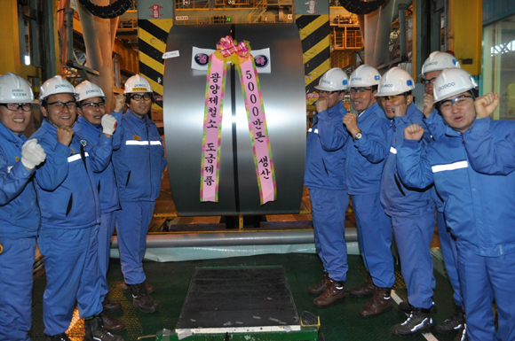 1988년 12월 1CGL(Continuous Galvaniging Line,연속 용융아연도금라인) 준공을 시작으로 첫 도금제품을 생산한 광양제철소는 12일 5CGL에서 누계 5천만톤째 제품을 생산했다.