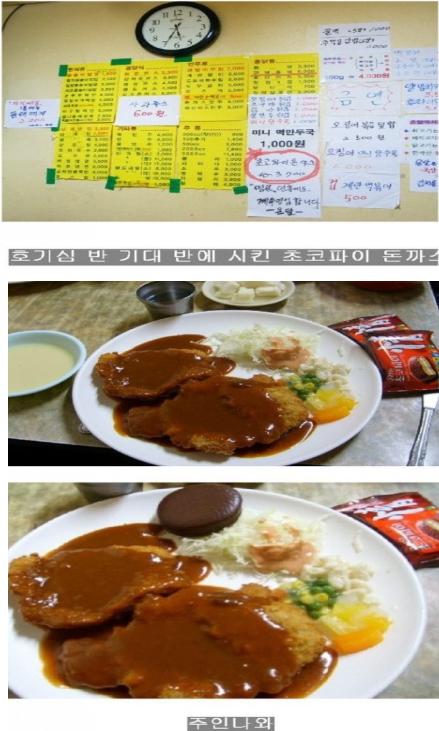 이 초코파이 돈가스는 단어 그대로 돈가스와 초코파이가 따로 나왔던 것.
