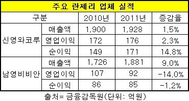두 회사가 매출액 기준으로 50억원대의 근소한 차이를 보이고 있어 올 한 해도 이들의 경쟁이 볼만해졌다.