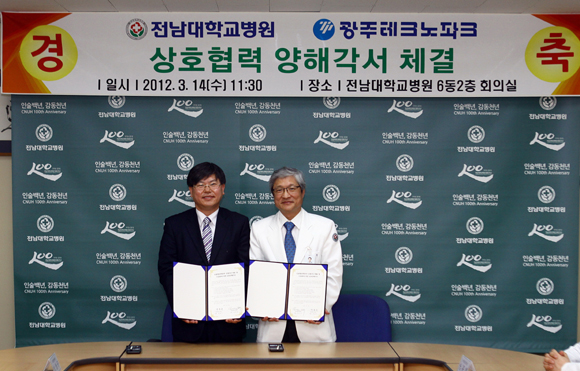 전남대병원(원장 송은규)과 광주테크노파크(원장유동국)는 14일 전남대병원회의실에서 ‘공동연구개발 및 기술사업화 협력’에 관한 MOU를 체결했다.