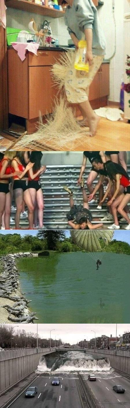 이 상상하기 싫은 1초 후 사진들을 살펴보면 사람이 계단에서 미끄러지는 모습, 차들 바로 뒤에 파도가 밀려오는 모습 등 바로 1초 후에 벌어질 아찔한 순간을 상상하게 만드는 사진들이다.