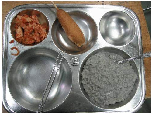 게재된 사진은 충격적인 급식 사진이 담겨 있는 것으로 사진 속에는 회색 빛깔의 죽이 눈길을 끌고 있다.
