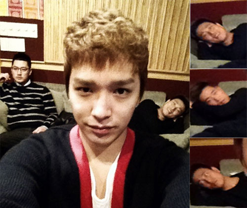 이 쌈디의 셀카 사진 속의 개리는 쌈디의 뒤편에서 여러가지 표정을 짓고 있다.