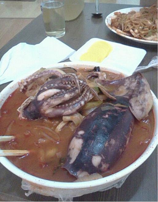 이 짬뽕 주문의 최후 게시물에는 오징어가 통째로 들어가 있는 짬뽕이 보인다.