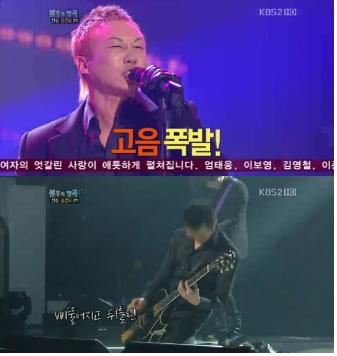 처음에는 조용하게 경청하던 청중들은 순간 성우와 노브레인의 기를 전해받은 듯 기립해 무대를 함께 즐겼다. (사진=KBS2 방송 캡쳐)