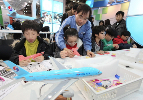 특히 대한항공은 이번 전시회 기간 동안 대한항공의 교육기부 프로그램을 직접 체험해볼 수 있는 체험 교실을 운영해 관람객들의 인기를 독차지했다.