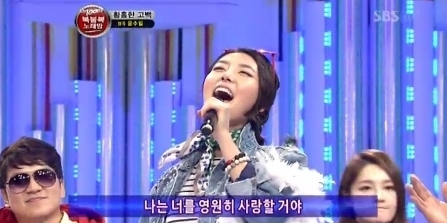 MC들은 이수정 고음불가에 대해 “노는 언니가 노래를 막 부르셨다”고 말해 고개를 들지 못하게 했다.(이수정 고음불가 사진-방송캡처)