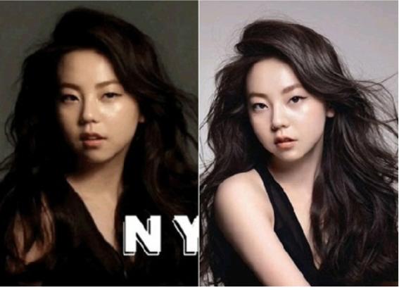 소희 보정 전후 사진을 접한 누리꾼들은 "어떤게 보정전인지 모르겠네", "피부가 아기피부", "보정 전이 더 예쁘네"등의 반응을 보였다. (사진-온라인 커뮤니티)