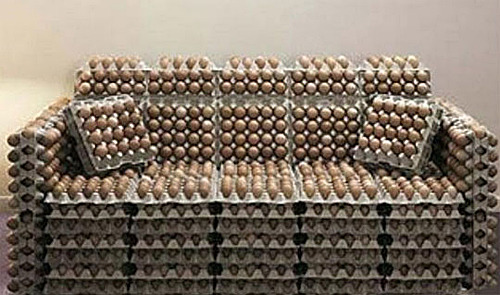 사진에는 계란 30알이 든 계란판을 쌓아 올려 소파 모양을 만들었다.
