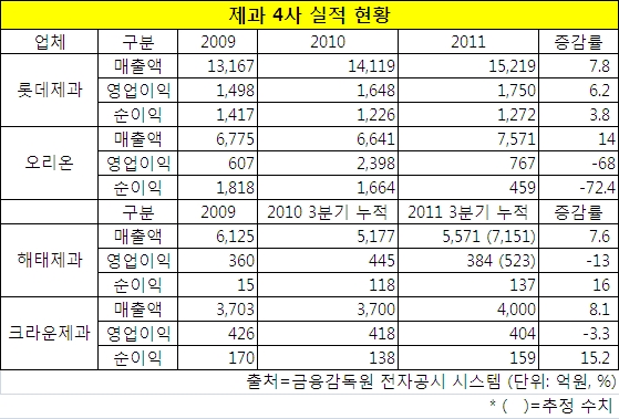 IBK투자증권 박애란 연구원은 “2008년 이후 프리미엄 제과시장이 확대됐고 30~40대 소비층 확대와 안전성 우려가 완화돼 판매량이 증가했다”며 “제과시장이 선순환구조에 진입함에 따라 2012년에도 성장세를 지속할 전망”이라고 분석했다.