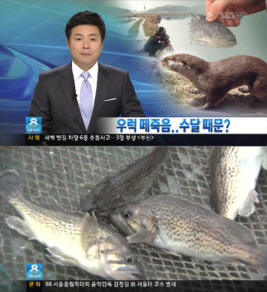 전문가들에 따르면 우럭 떼죽음은 천연 기념물 330호 수달 때문이다.