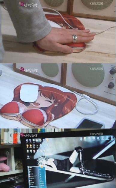 그러나 갑자기 조권은 민망한 표정으로 마우스패드를 감추려고 노력했다.