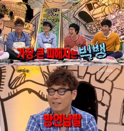 윤종신은 이에 “가장 큰 피해자는 빅뱅이다”라고 말했다. 윤종신의 망언에 하하는 “우리는 아니다. 우리가 졌어. 빅뱅이 최고야”라고 외쳐 웃음을 자아냈다. (사진-KBS)