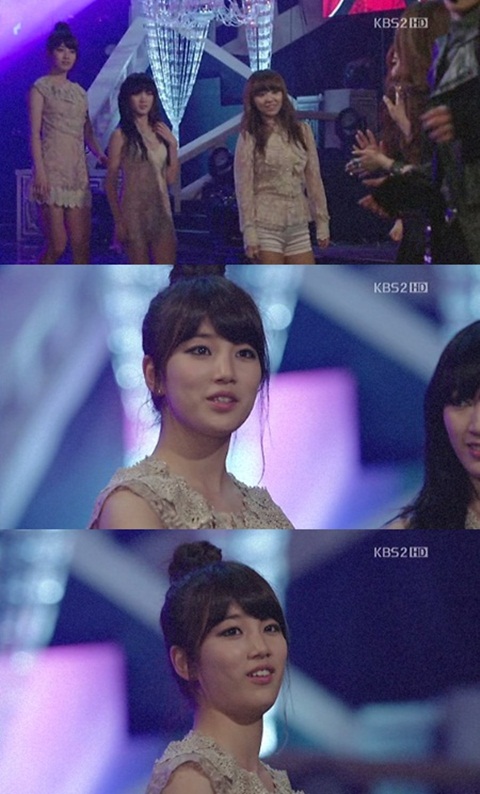 그녀는 슈퍼아이돌 멤버들의 공연에 앞서 무대에 선 미쓰에이의 멤버로 한 마디를 남기고 스쳐 지나갔다. 수지는 노래를 끝마치고 내려오다 허쉬의 전 멤버 지연(리안 역)에게 말을 건다.