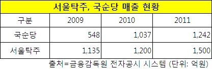 라이벌 국순당의 작년 막걸리 매출 성장세도 서울탁주와 비슷한 20%수준을 유지했으나 전년의 고성장세에서는 한풀 꺾였다.