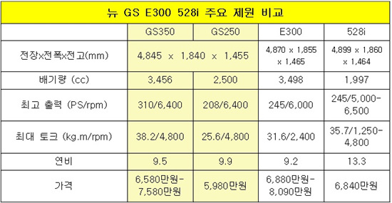 다만 2500cc의 GS250은 작년 말 출시된 2012년형 BMW 528i(2000cc)에 파워트레인 스펙에서 크게 뒤져 고전이 예상된다.