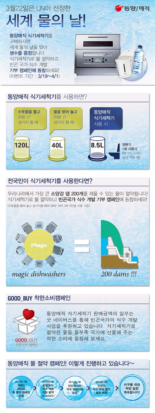 동양매직(대표 염용운)은 '2012 세계 물의 날'을 맞아 물 절약 실천을 도모하는 기념 이벤트를 진행한다.