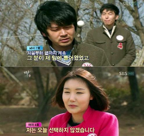 이날 방송에서 초반 여자 5명의 마음을 얻으며 '칠간지', '의자왕'으로 불리는 등 주목을 받았던 남자 7호는 일편단심 여자 4호만을 향하는 순정남의 모습을 보였다.