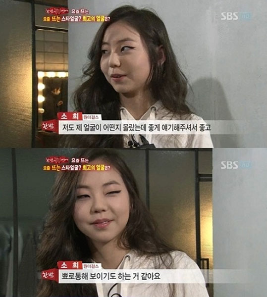 이날 방송에서 소희는 다시 통통하게 오른 볼 살로 그간 보여 왔던 '만두 소희'의 모습을 드러내 삼촌 팬들의 시선을 사로잡았다.