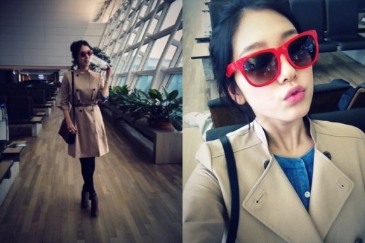 사진 속 박신혜는 빨간색 선글라스와 트렌치 코트를 입은 공항패션을 선보였다.
