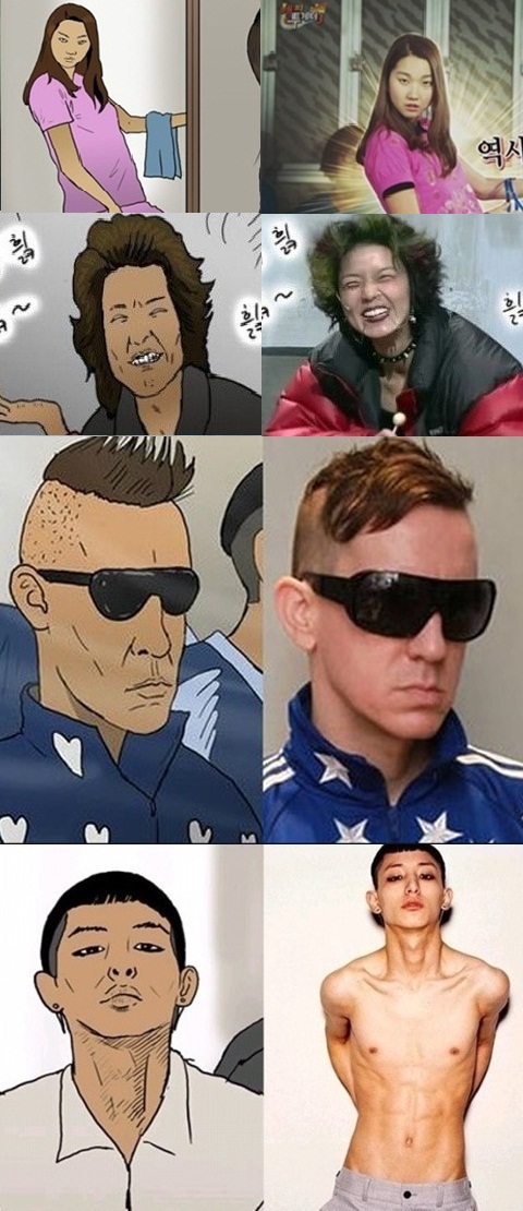 최근 온라인 커뮤니티 상에는 ‘패션왕 닮은꼴 총집합’이란 제목으로 포털사이트에 연재되고 있는 인기웹툰 ‘패션왕’의 등장인물과 일치하는 연예인들의 비교사진이 게재됐다.